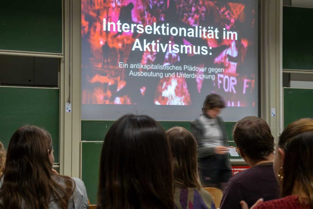 In verschiedenen Vorträgen, einem Filmbeitrag sowie einem Poetry Slam wurden die desaströsen Auswirkungen der Fleischindustrie auf Menschen, Tiere und Umwelt verdeutlicht und zugleich Impulse geliefert, wie eine bessere Welt ohne Ausbeutung und Leid aussehen kann und wie Menschen ins Handeln kommen können um diese Utopie Realität werden zu lassen.