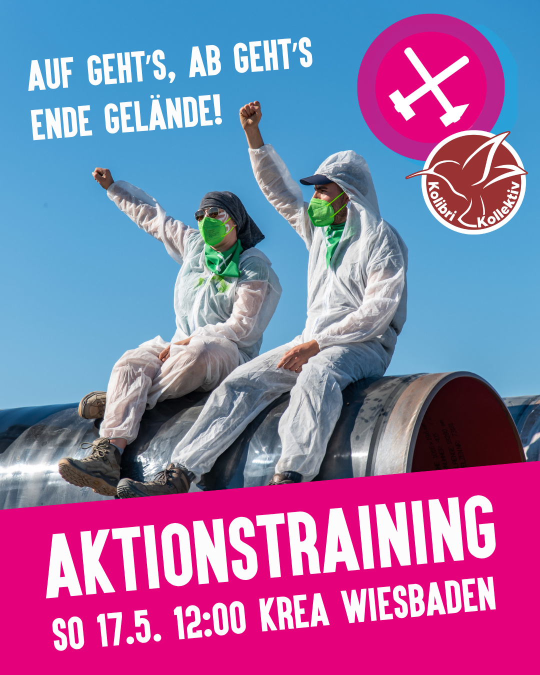 Damit ihr gut vorbereitet an der Aktion teilnehmen könnt, bieten wir am 17. Mai ein Aktionstraining für zivilen Ungehorsam in Wiesbaden an. In praktischen Übungen und Rollenspielen lernt ihr, was euch erwartet, wie sich bestimmte Situationen anfühlen und wie ihr auch in stressigen Situationen richtig reagiert.