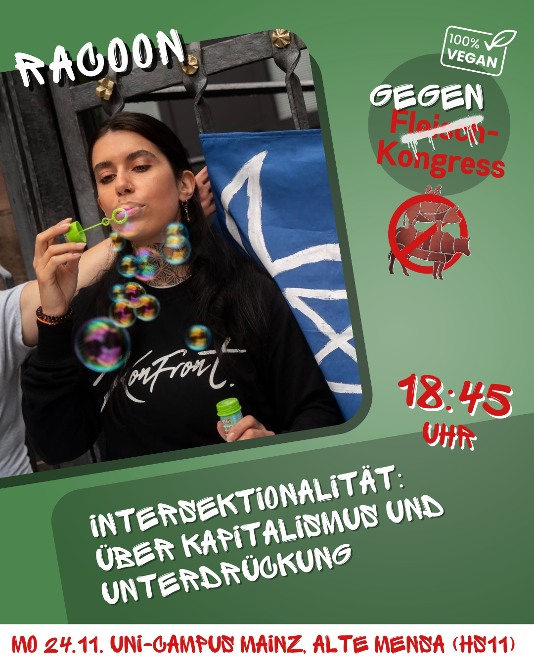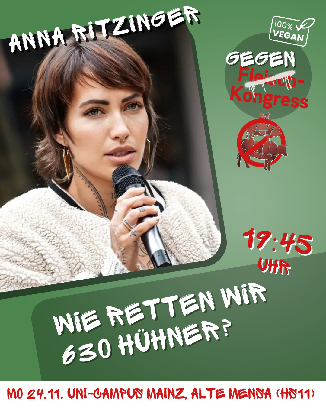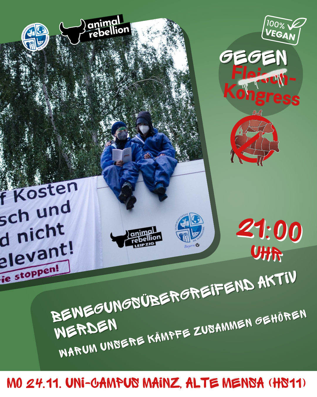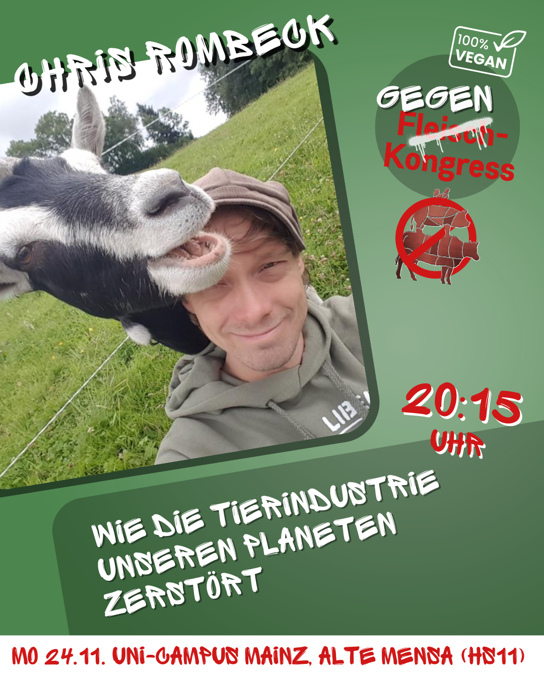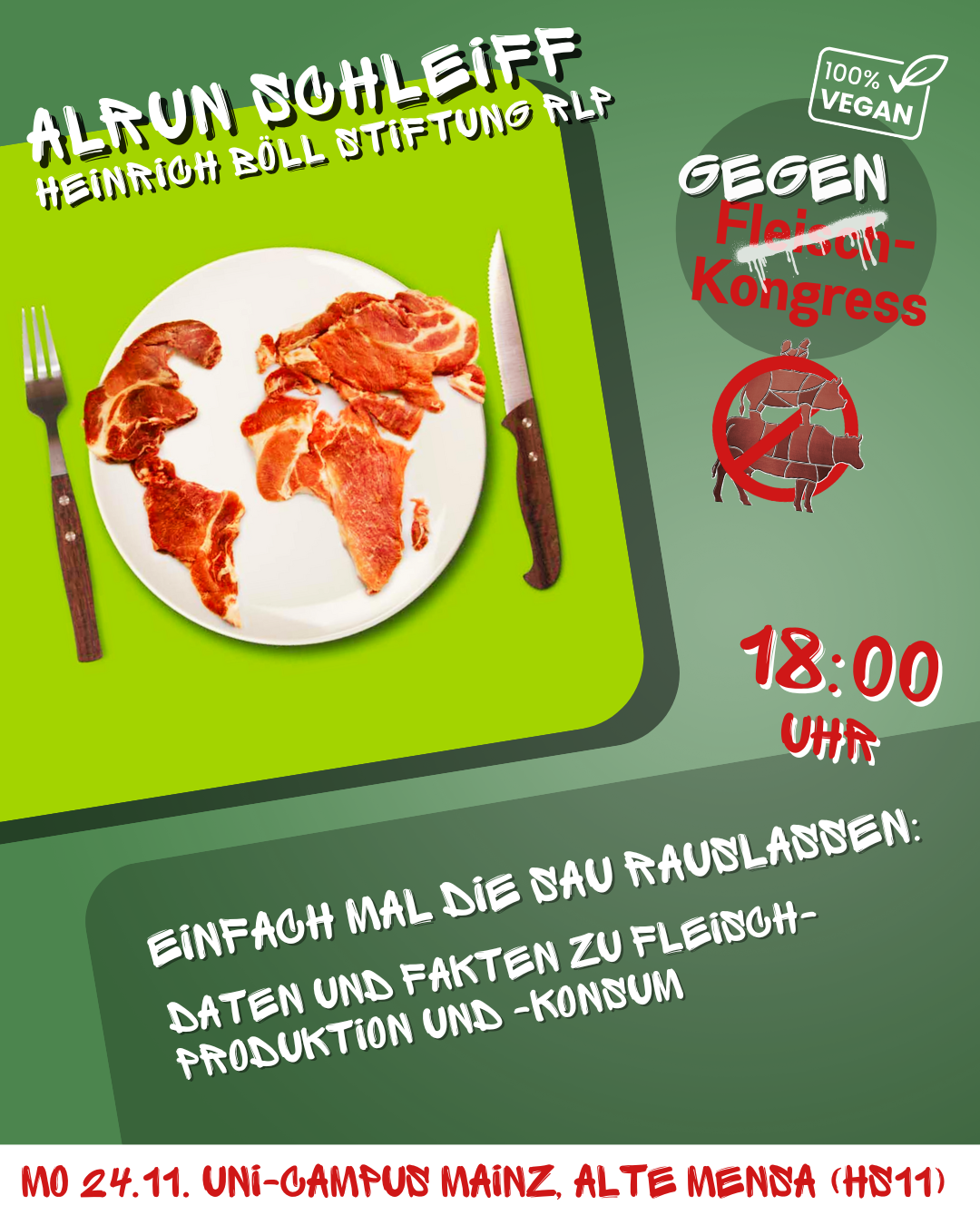 Alte Mensa auf dem Uni-Campus Johann-Joachim-Becher-Weg 5, Mainz, GermanyEnde November soll der Deutsche Fleischkongress bereits zum fünften mal in der Mainzer Rheingoldhalle tagen. Das Bündnis gegen den Deutschen Fleischkongress ruft zum Gegenkongress auf! Auch dieses Jahr trifft sich… Der Gegenkongress zum Deutschen Fleischkongress weiterlesen